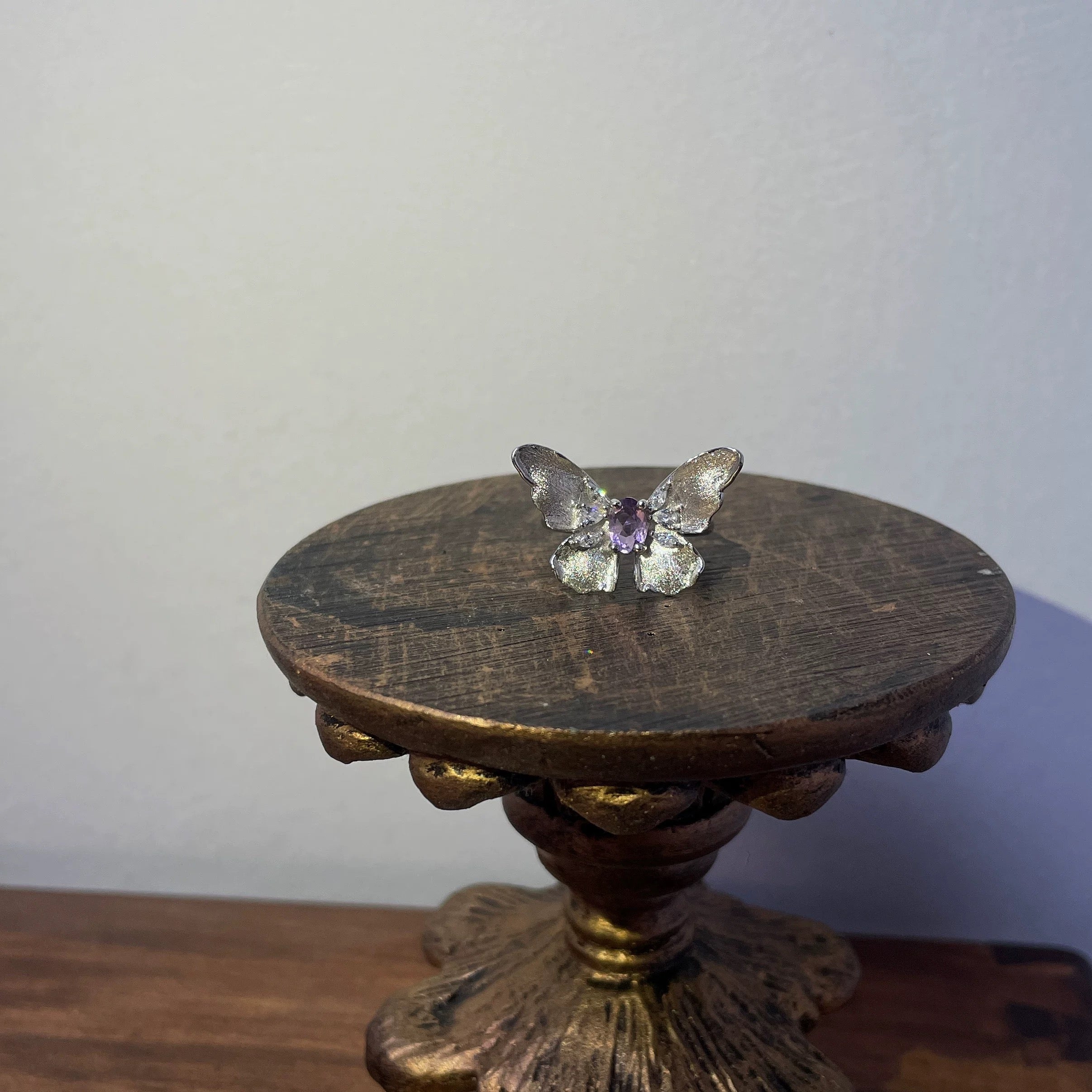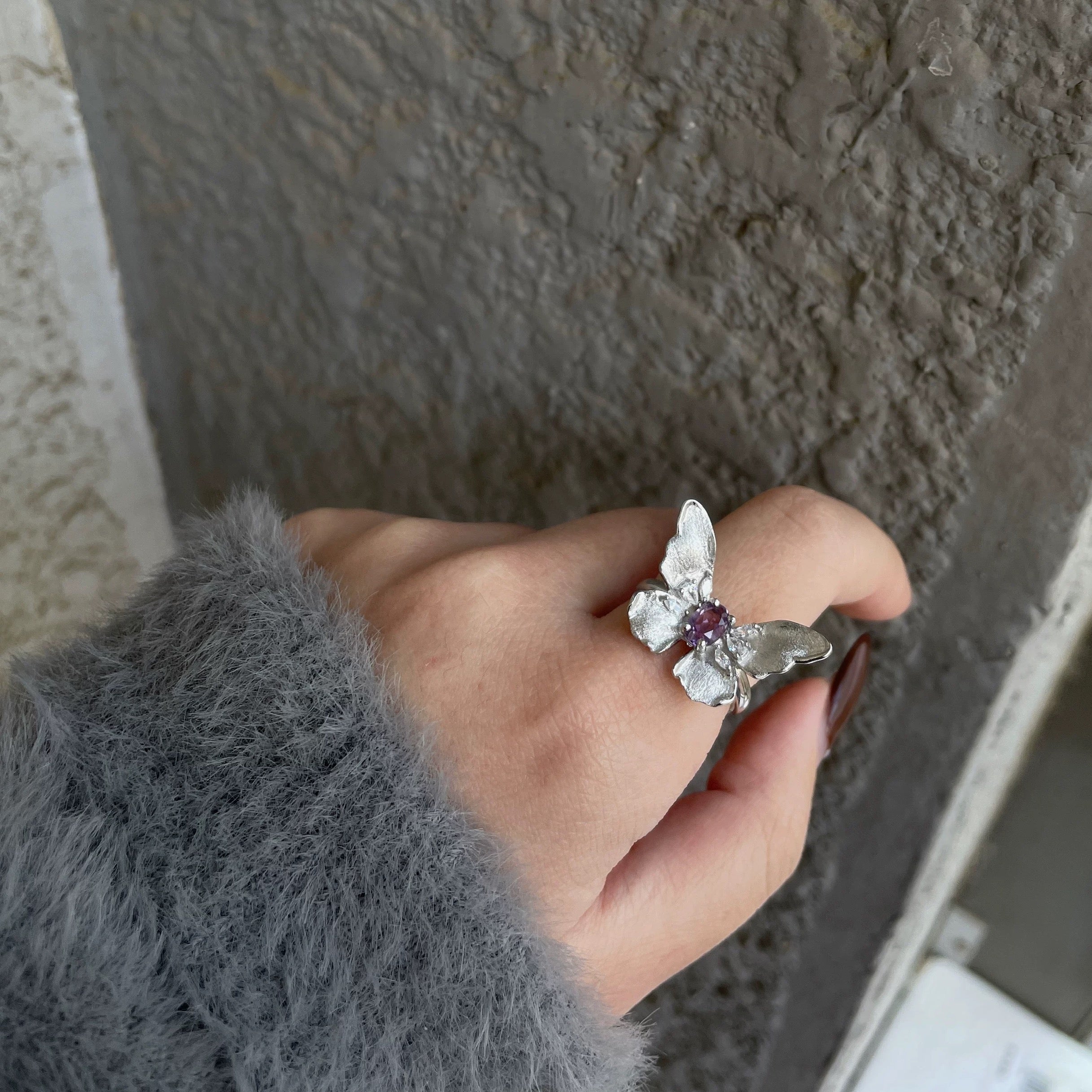Moonooze S925 Natural Amethyst Charm Retro Index Finger Butterfly Ring moonooze
